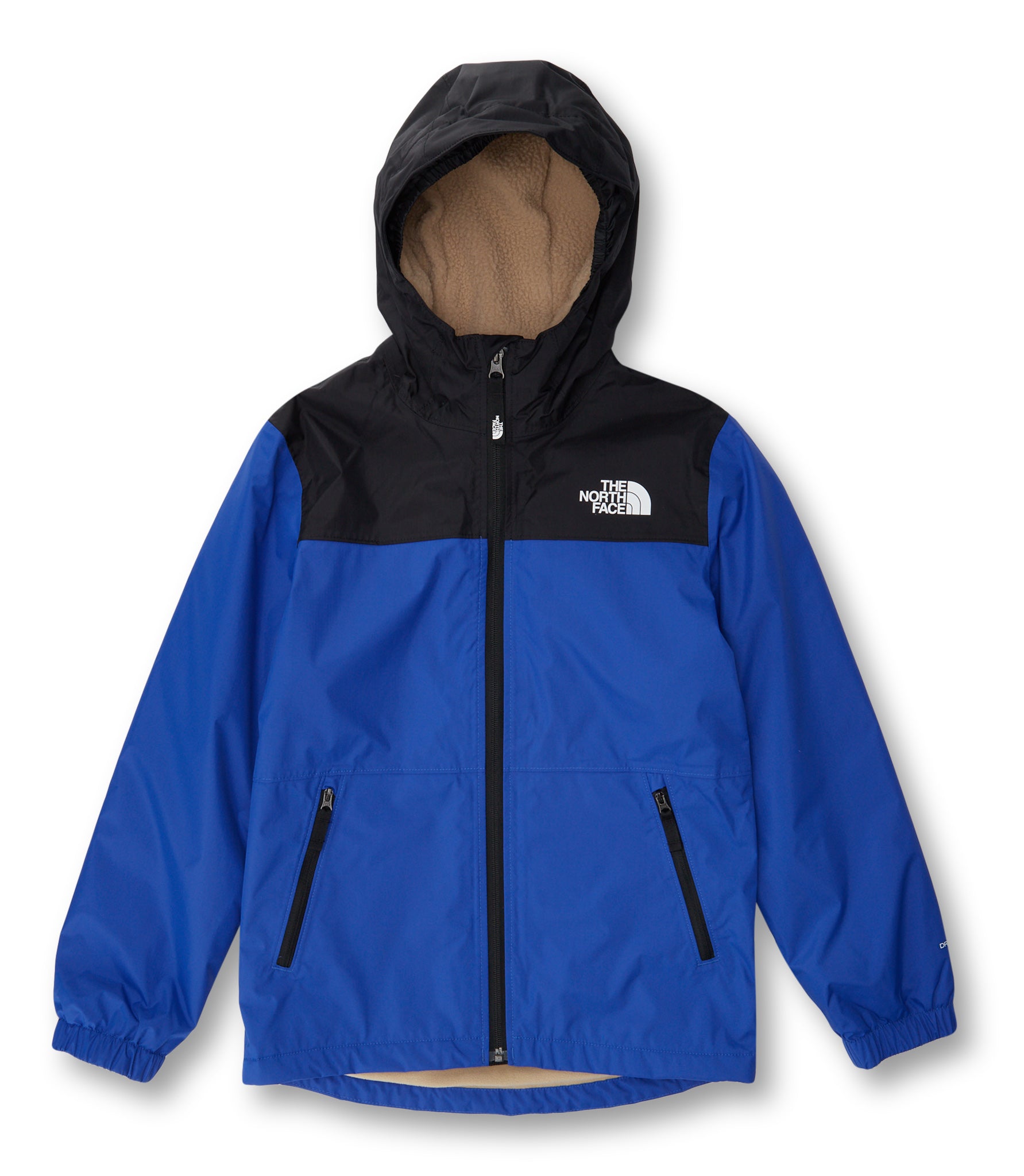Details. Waterproof rain jacket designed for young adventurers. Recycled polyester construction holds up to daily use. DryVent laminate offers breathable waterproof protection. Lightweight synthetic insulation in sleeves adds warmth. Fleece-lined hood fights off rain and chill during cold storms. Multiple pockets keep important items securely.