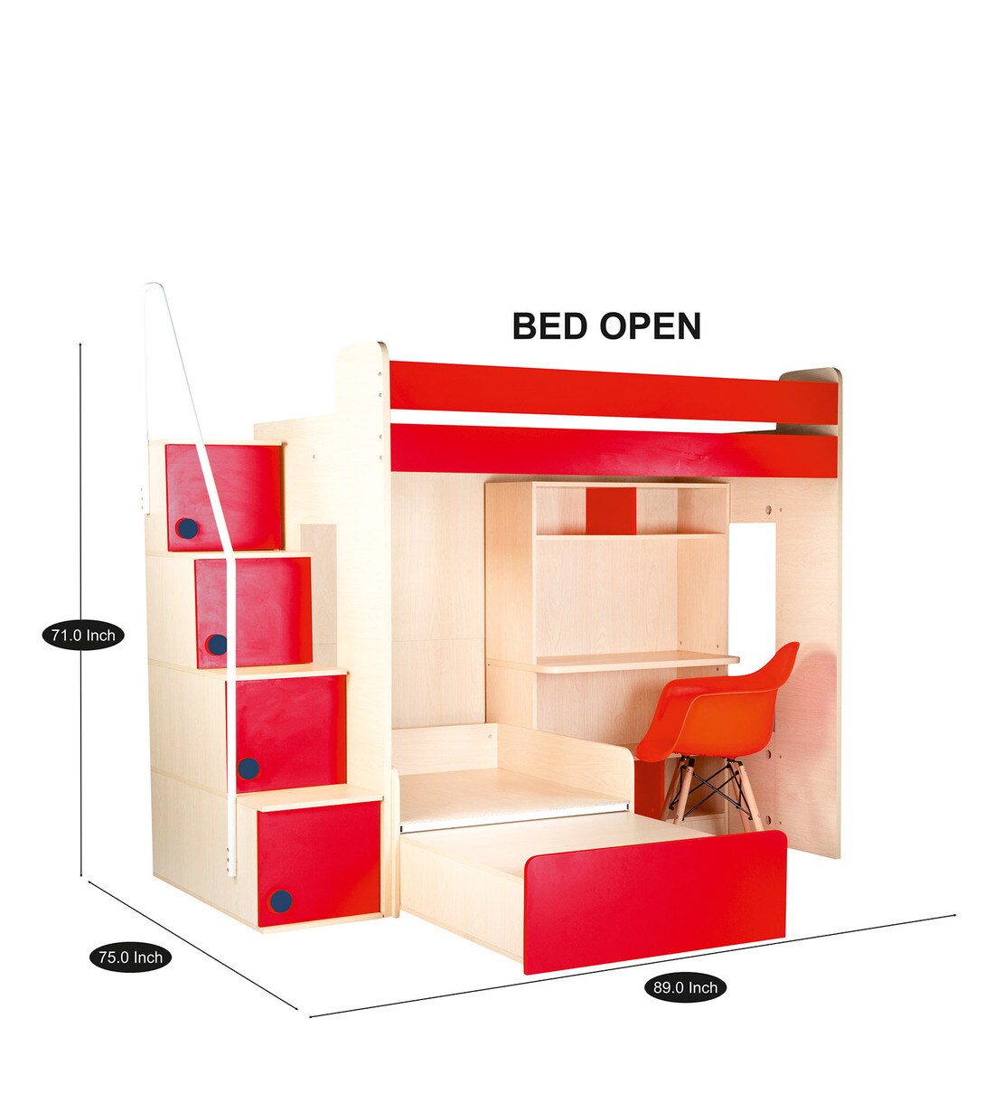 Buy Flexi Study Bed Unit in Red Colour By YiPi Online Online Bunk Beds Bunk Beds Furniture