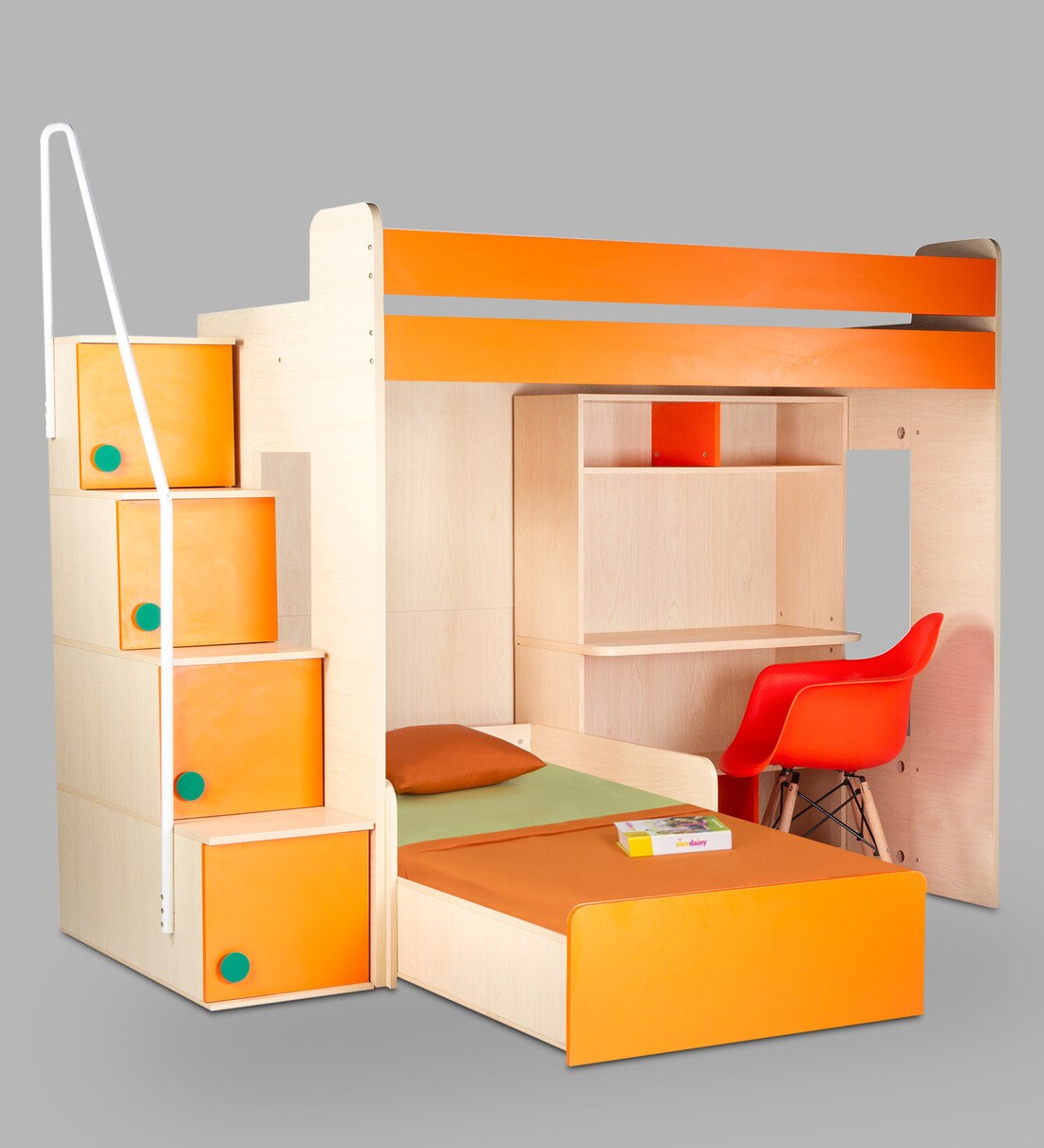Buy Flexi Study Bed Unit in Orange Colour By YiPi Online Online Bed Units Kids Beds