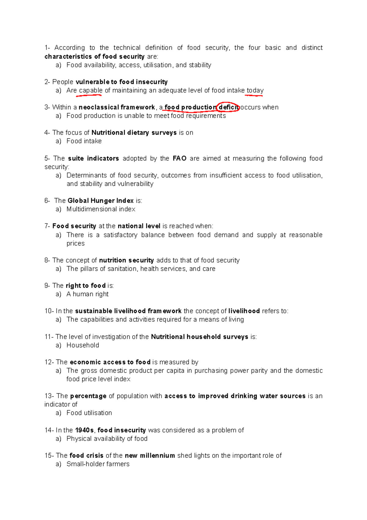 Food Economics questions 1 According to the technical definition of food security, the four