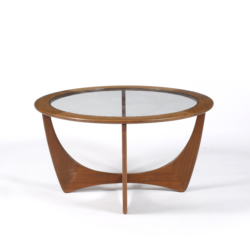 G Plan astro style teak and glass round coffee table dating from the 1960s or 1970s. Teak Afrormosia G Plan circular coffee table designed by Victor Wilkins designed circa 1969. Often referred to as the Astro coffee table this is such a shapely piece of furniture.