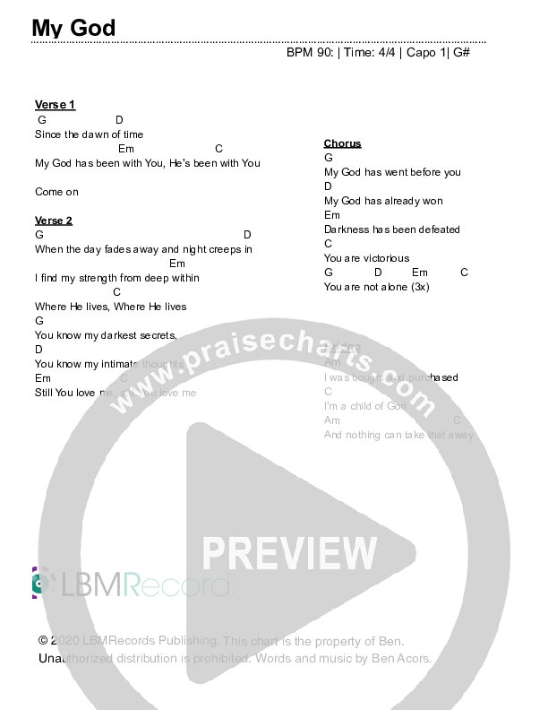 My God Chords PDF (Ben Acors) PraiseCharts