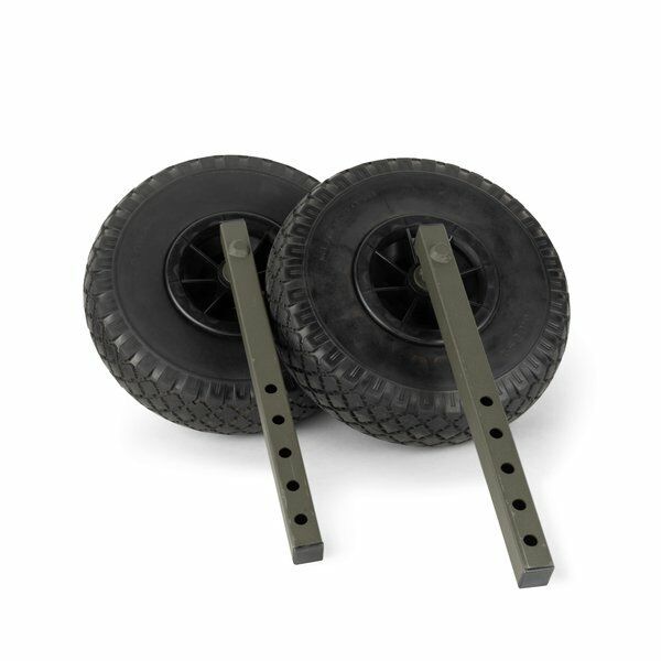 Replaces the supplied adjustable rear leg assemblies with wheels - perfect for flat ground conditions. Compatible with: T3280 Trax Metro Power Barrow T3281 Trax Evo Power Barrow T3265 Nash Tackle Power Barrow.
