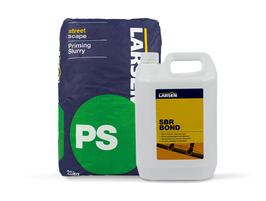 Slurry primer also improves adhesion and should be used with non-porous stones, such as Slate, Porcelain and Granite. Both Larsen Streetscape PS Primer and SBR Bond contain polymers for improved performance and require only the addition of water to create the slurry. London Stone supplies Larsen Streetscape PS Primer in 25kg bags for.