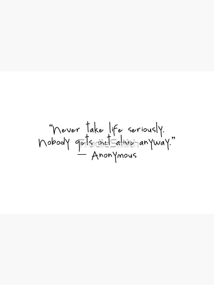 Never take life seriously. Nobody gets out alive anyway.” — Anonymous" Poster by TrudieSmith