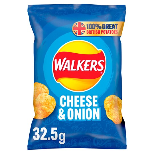Next-day Delivery FREE Delivery on orders over £40 Buy Box of 32 Packs x 32.5g Walkers Cheese & Onion Crisps, Cheese & Onion Flavour Potato Crisps. 100% Great British potatoes No artificial colours No preservatives Walkers Cheese & Onion Crisps PMP 65p Suitable for vegetarians Additional Pack Information Pa. Next-day Delivery FREE Delivery.