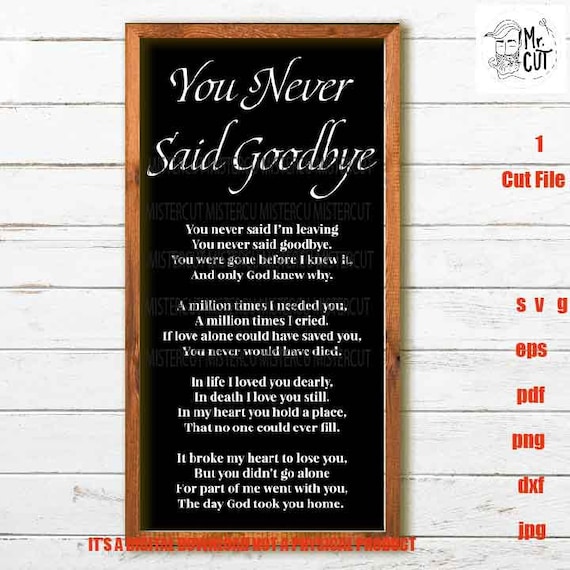 You Never Said Goodbye Cut Files Memory SVG Dxf Eps Png Etsy